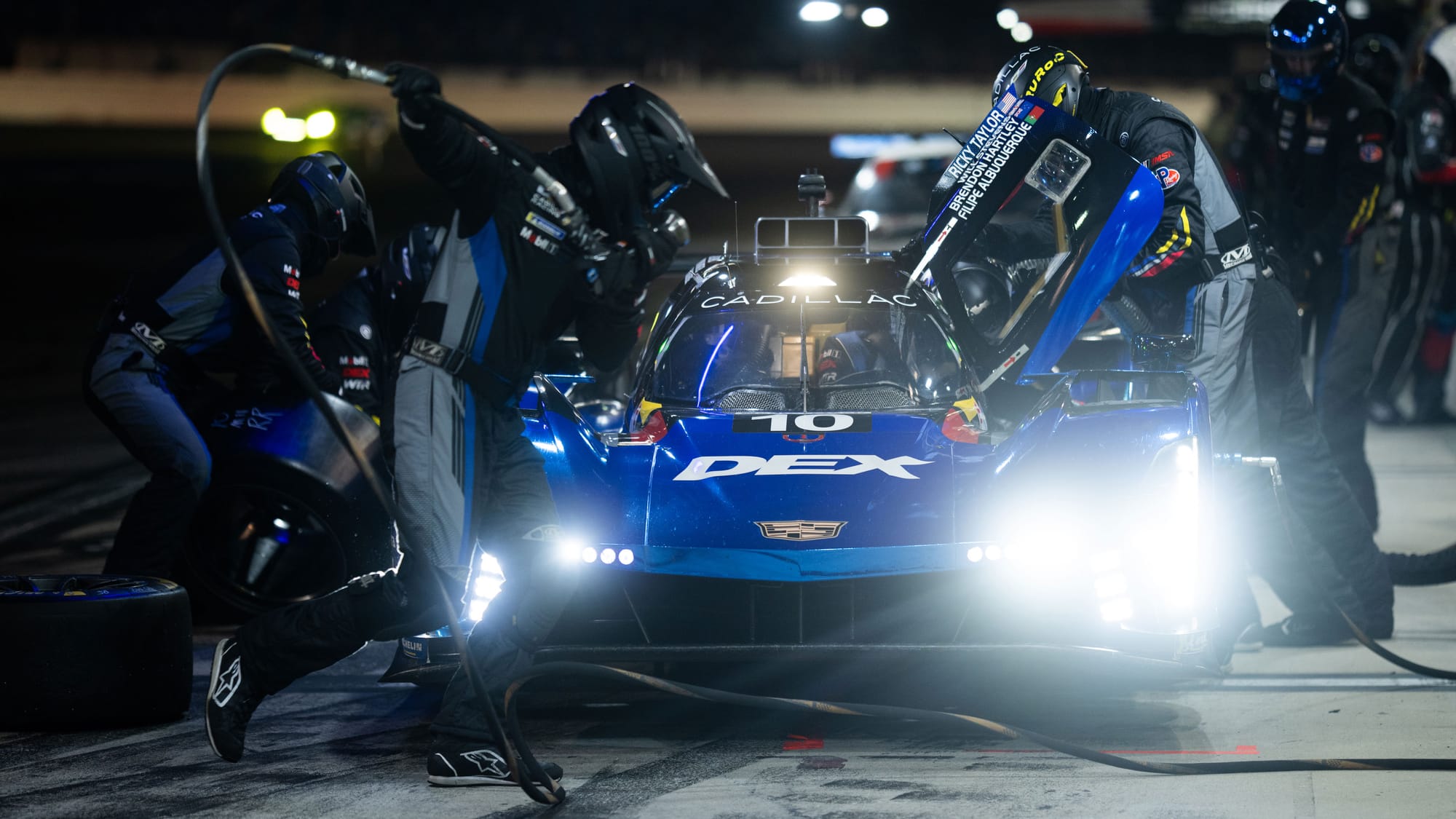 While the Hypercar class is very close to IMSAs GTP class with both being hybrid-electric prototype racers, there are differences. The major one is total power output, which is common among all cars in Hypercar and limited to around 670 hp total output. Otherwise, the Cadillac V-Series.R is powered by the same a 5.5-liter double overhead camshaft (DOHC) V8 it is in IMSA GTP. This includes the 67 hp Bosch-supplied Motor Generator Unit (MGU) as per the LMDh ruleset. Unlike a few entries in Hypercar, the Cadillac engine is naturally aspirated and brings about a unique sound amongst the field of V12s and turbocharged V6s.