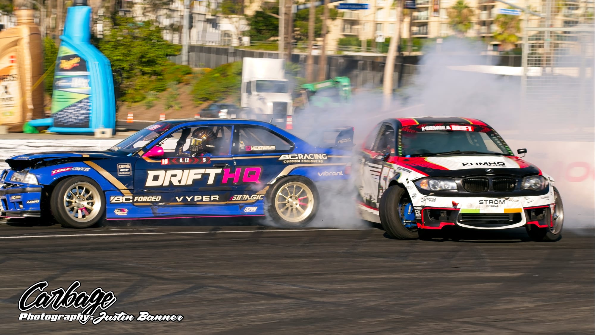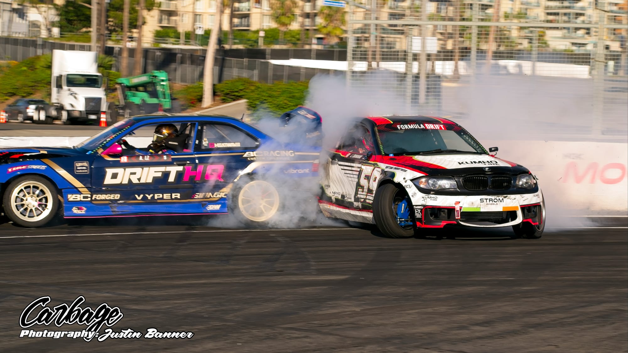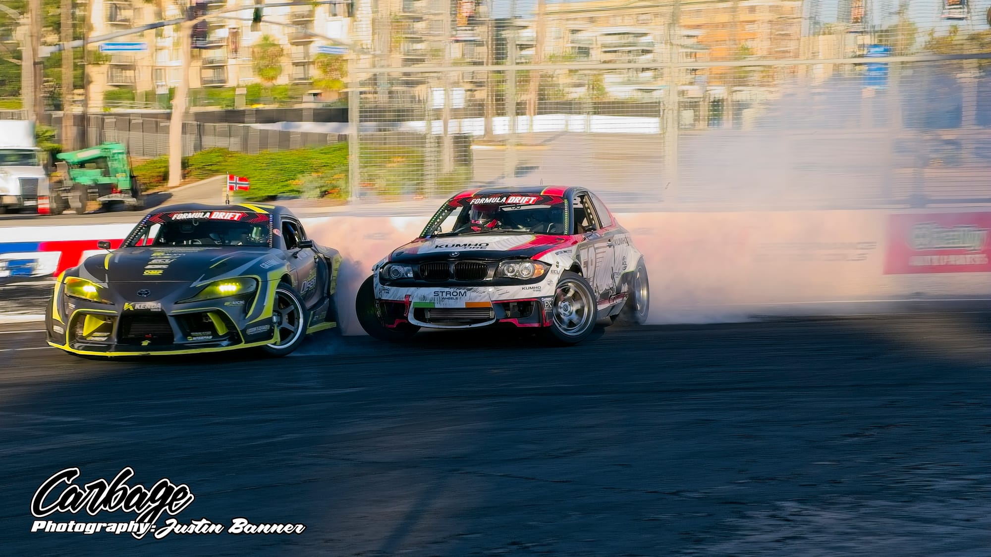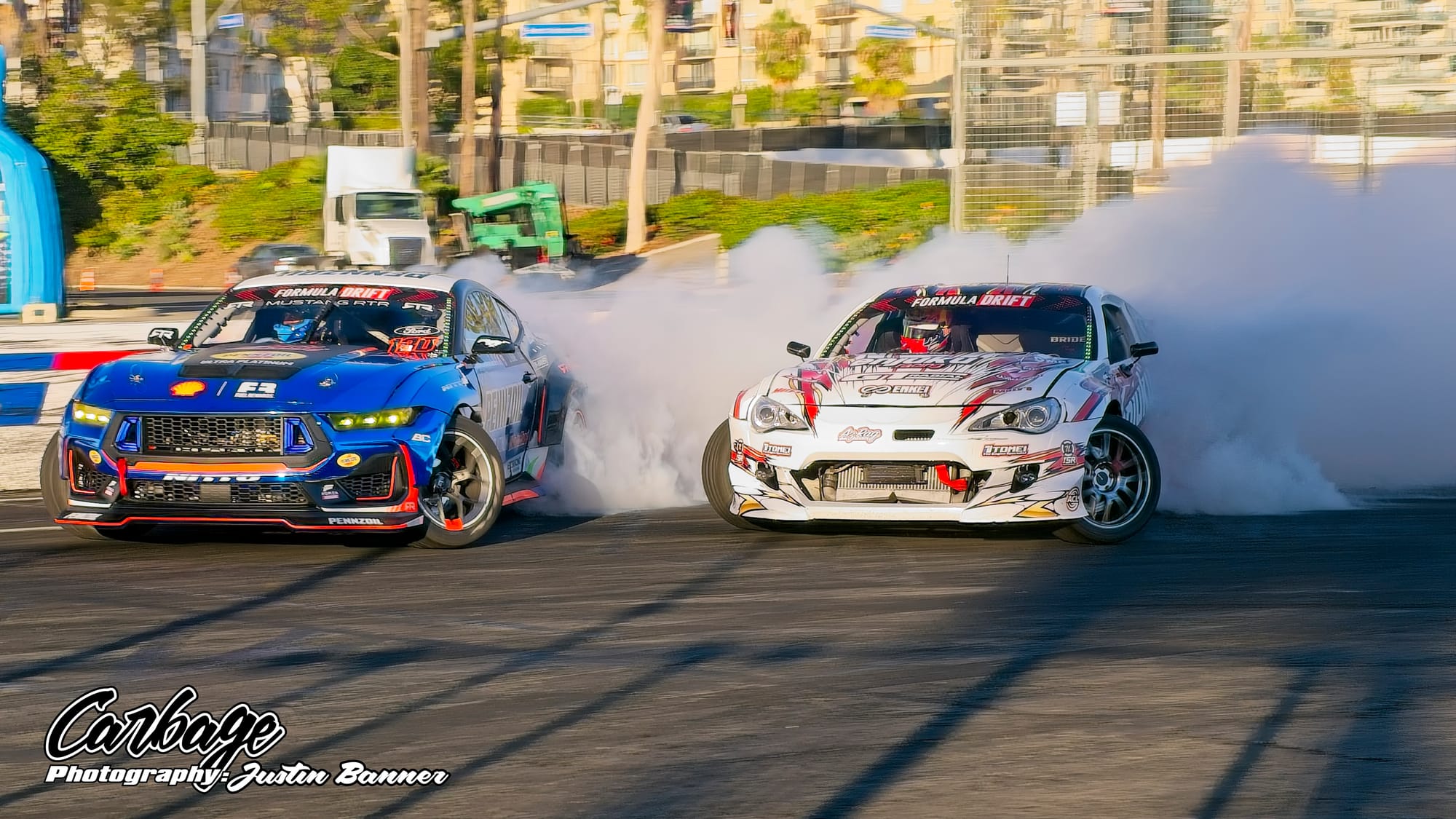 One of the unforeseen issues of running Shoreline Showdown was the lack of visibility, particularly as the sun set and drivers with more wheel speed were able to smoke their tires far more. This artificial cloud made visibility hard not only for drivers—a constant challenge for follow drivers, particularly—but also for fans and light winds weren’t helping clear it out. As the course did come back on itself before the finish, tire smoke lingered in the air and blocked the view of the finish. Hopefully, when Formula Drift comes back to Long Beach for round eight, this configuration will be tweaked to reduce that issue. Else, it will ruin the show for fans if there isn’t any wind to help clear the course. Otherwise, it seemed like a huge success that Formula Drift needed to make Long Beach a more permanent home for the final in the future.