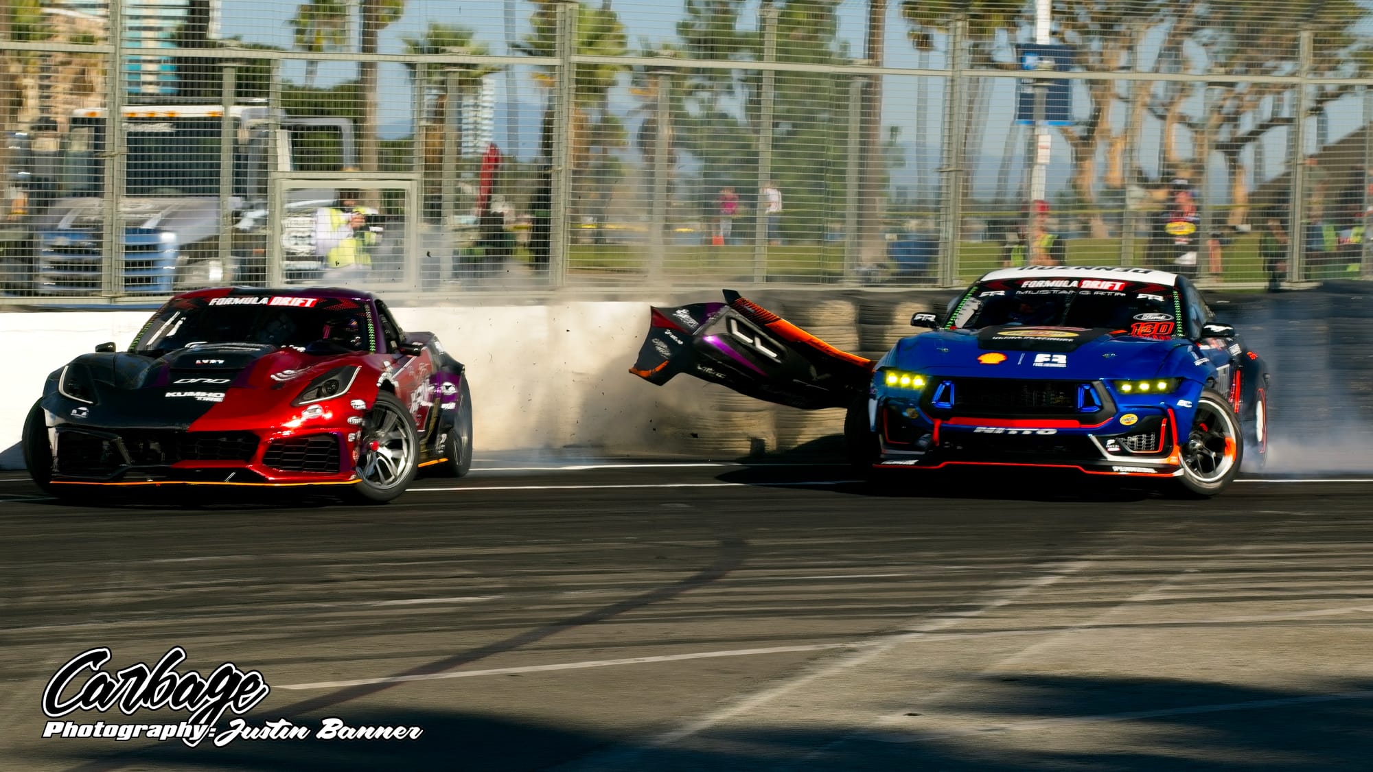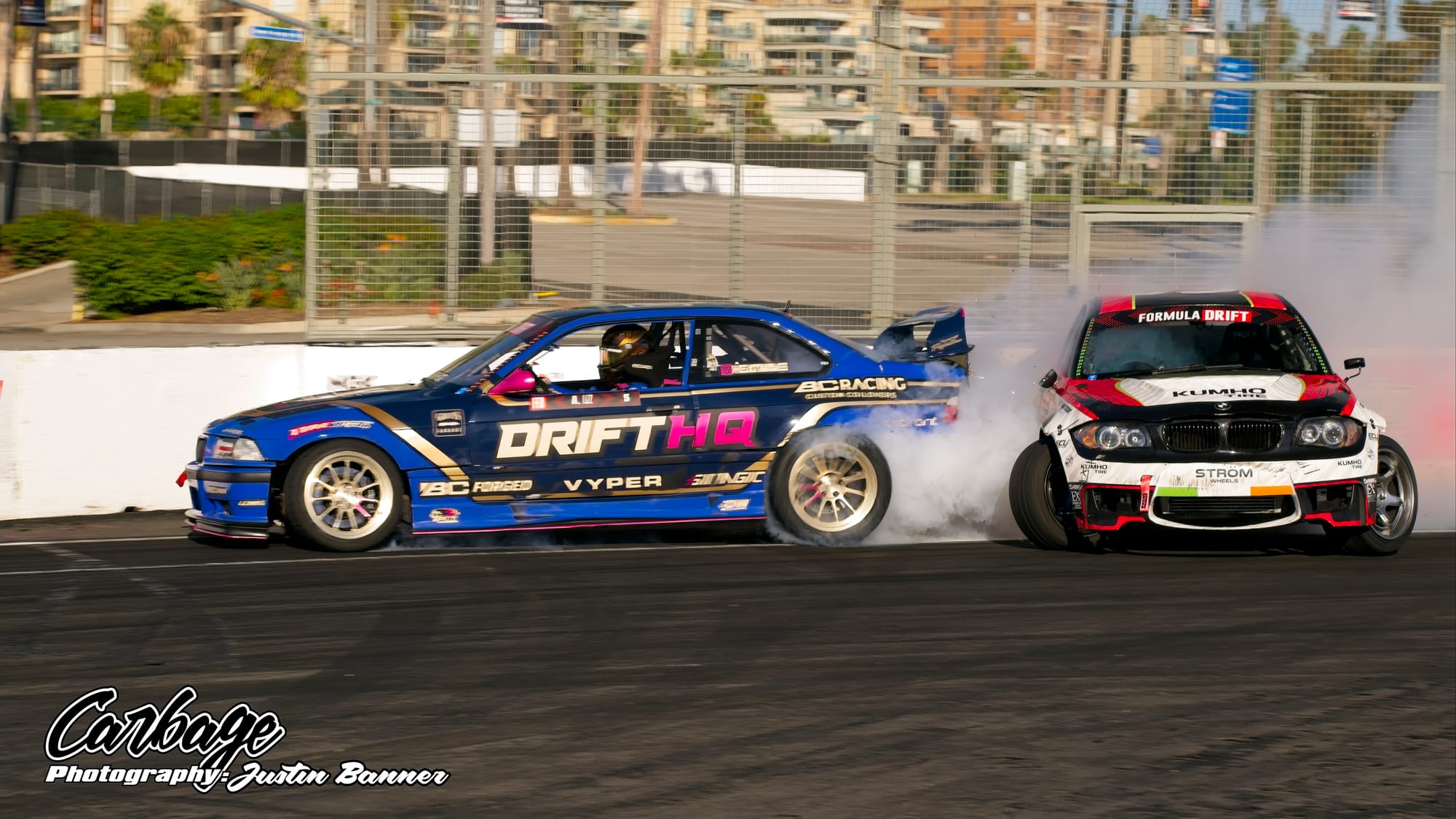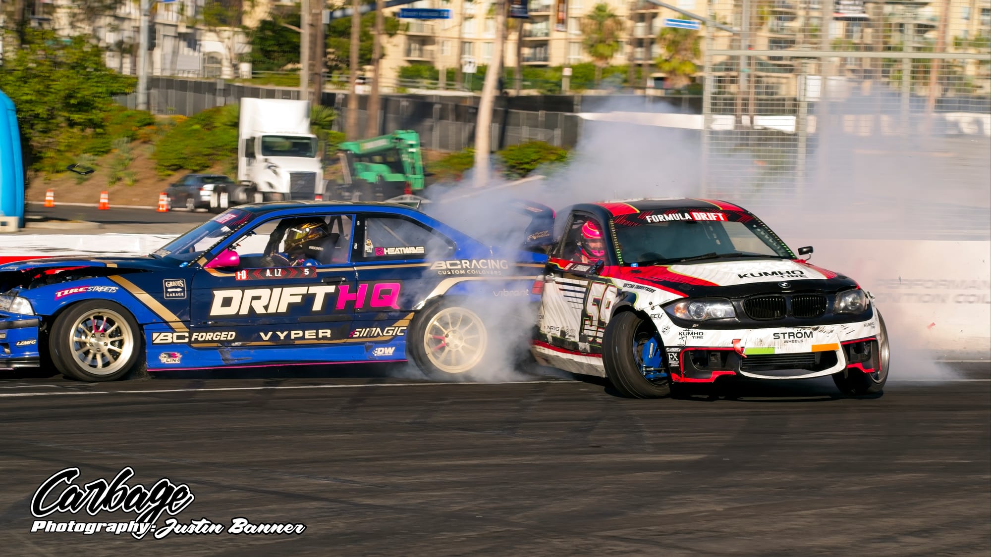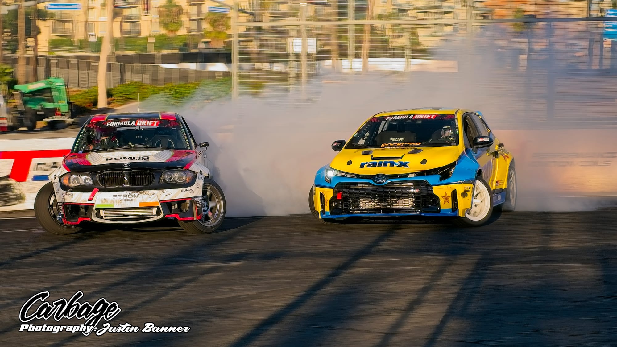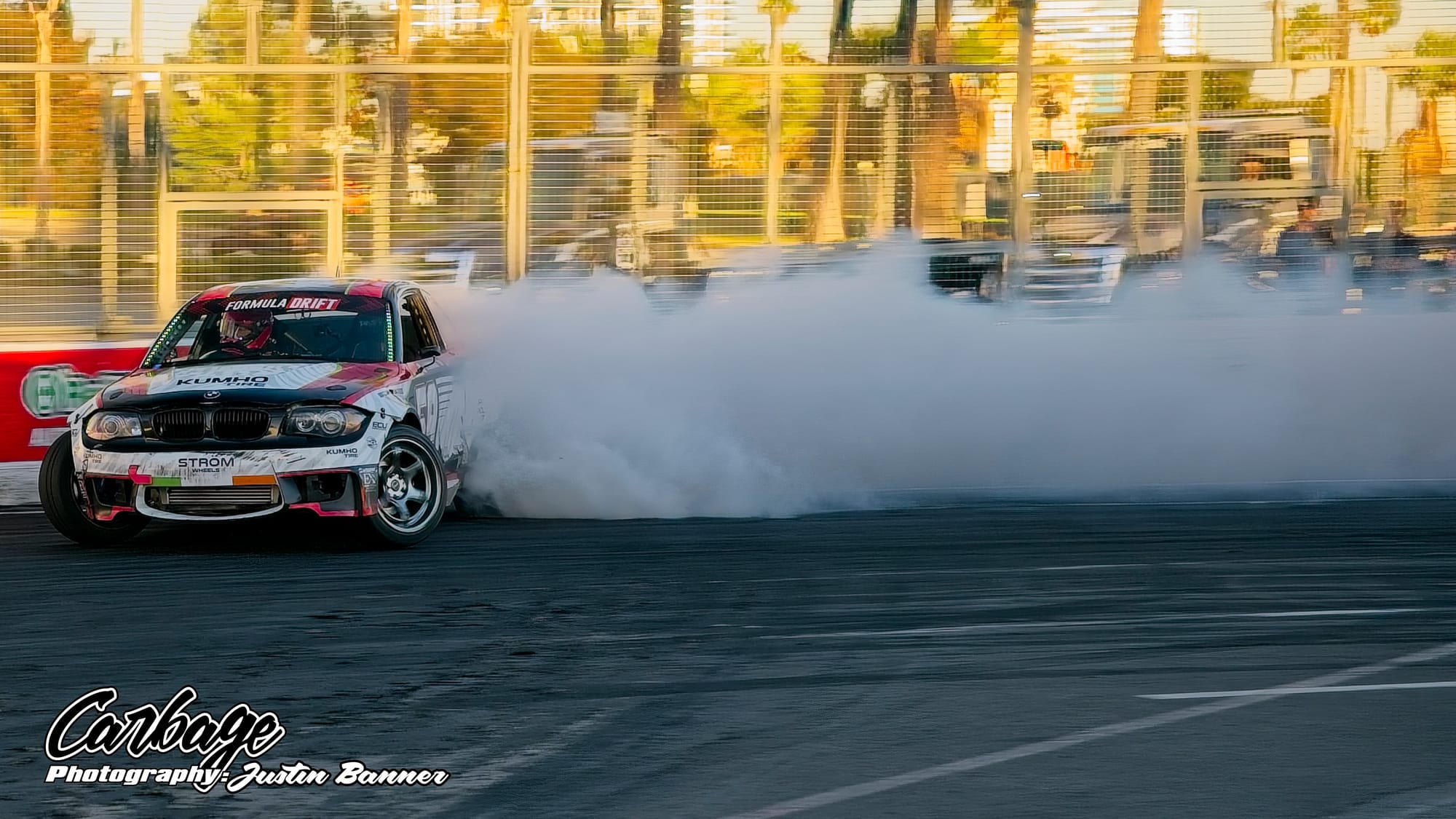 One of the unforeseen issues of running Shoreline Showdown was the lack of visibility, particularly as the sun set and drivers with more wheel speed were able to smoke their tires far more. This artificial cloud made visibility hard not only for drivers—a constant challenge for follow drivers, particularly—but also for fans and light winds weren’t helping clear it out. As the course did come back on itself before the finish, tire smoke lingered in the air and blocked the view of the finish. Hopefully, when Formula Drift comes back to Long Beach for round eight, this configuration will be tweaked to reduce that issue. Else, it will ruin the show for fans if there isn’t any wind to help clear the course. Otherwise, it seemed like a huge success that Formula Drift needed to make Long Beach a more permanent home for the final in the future.