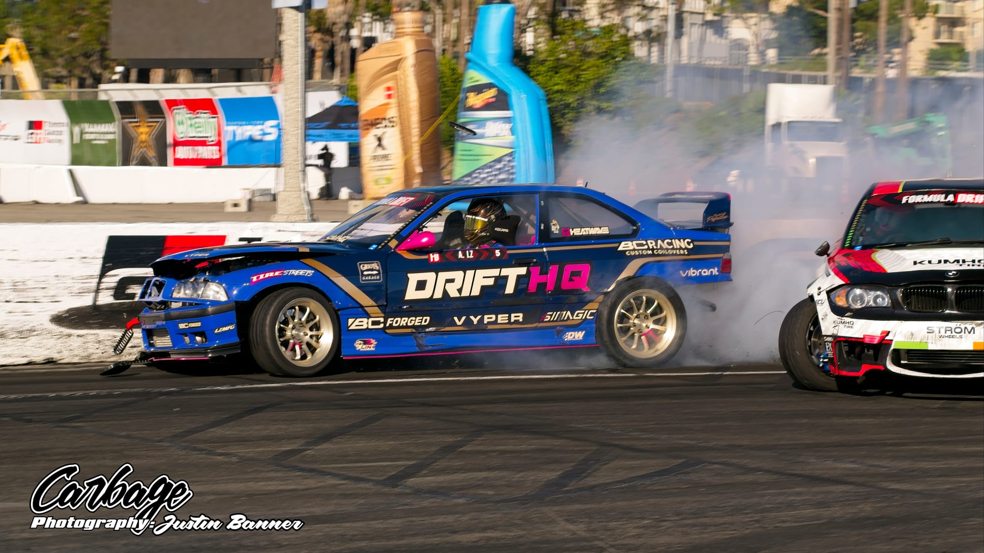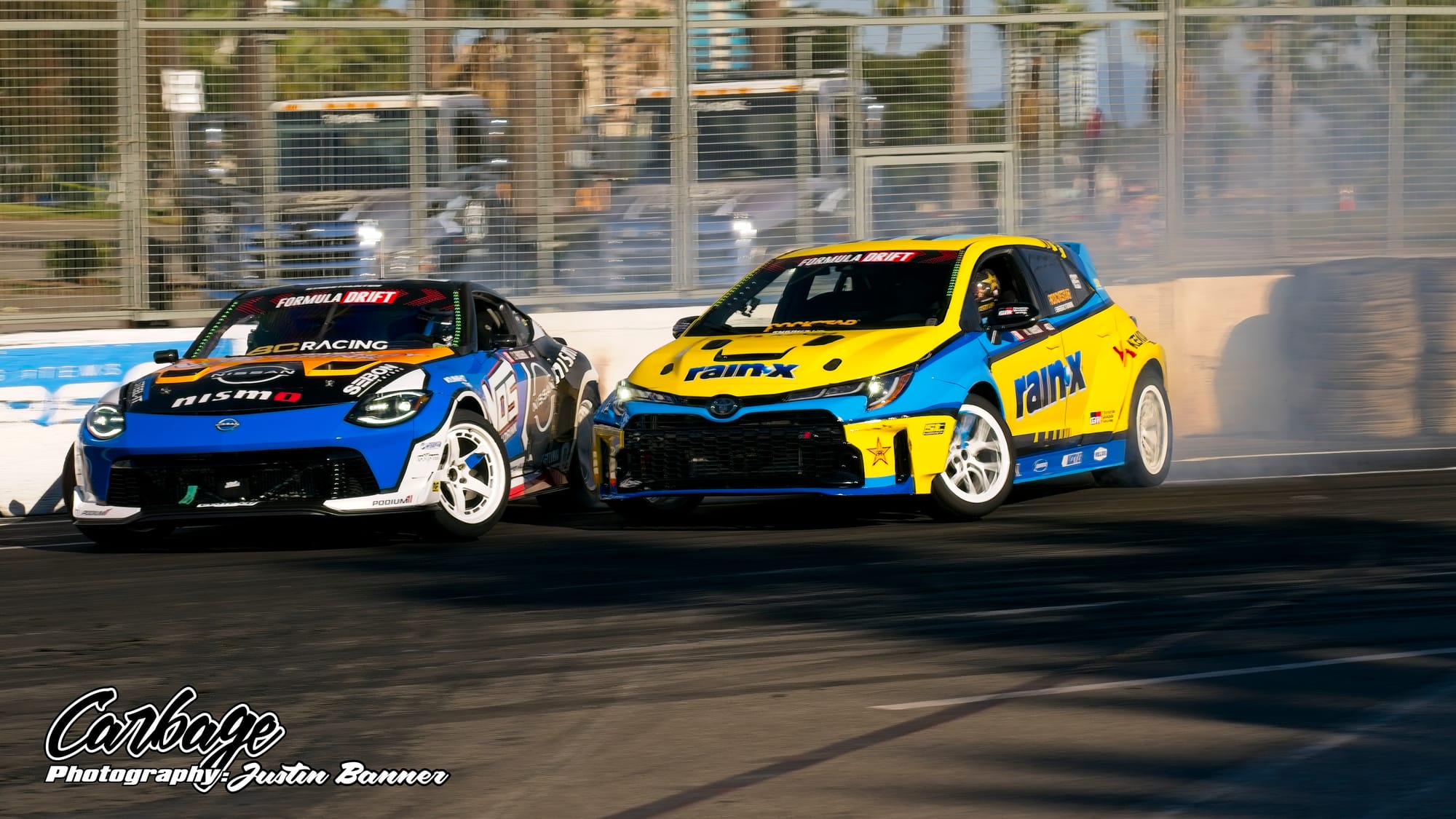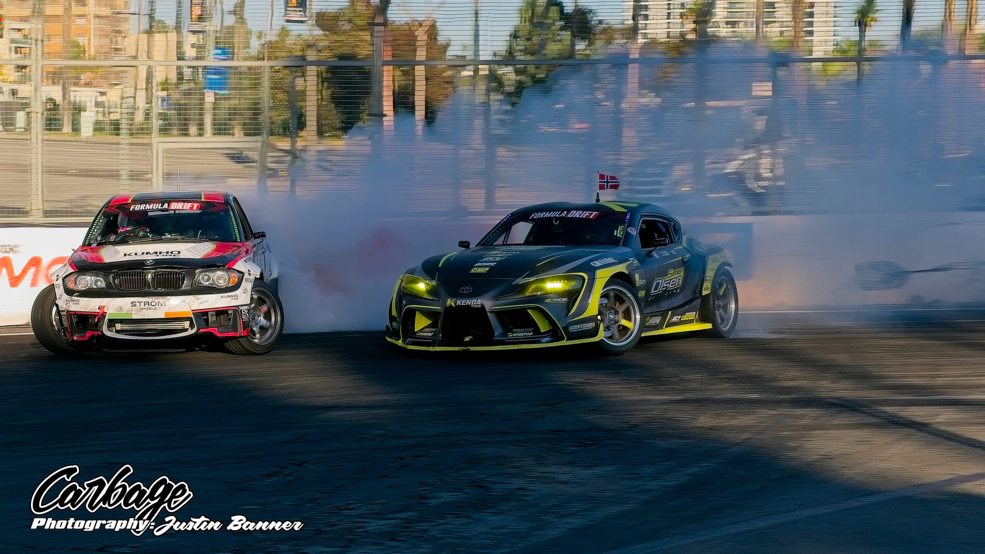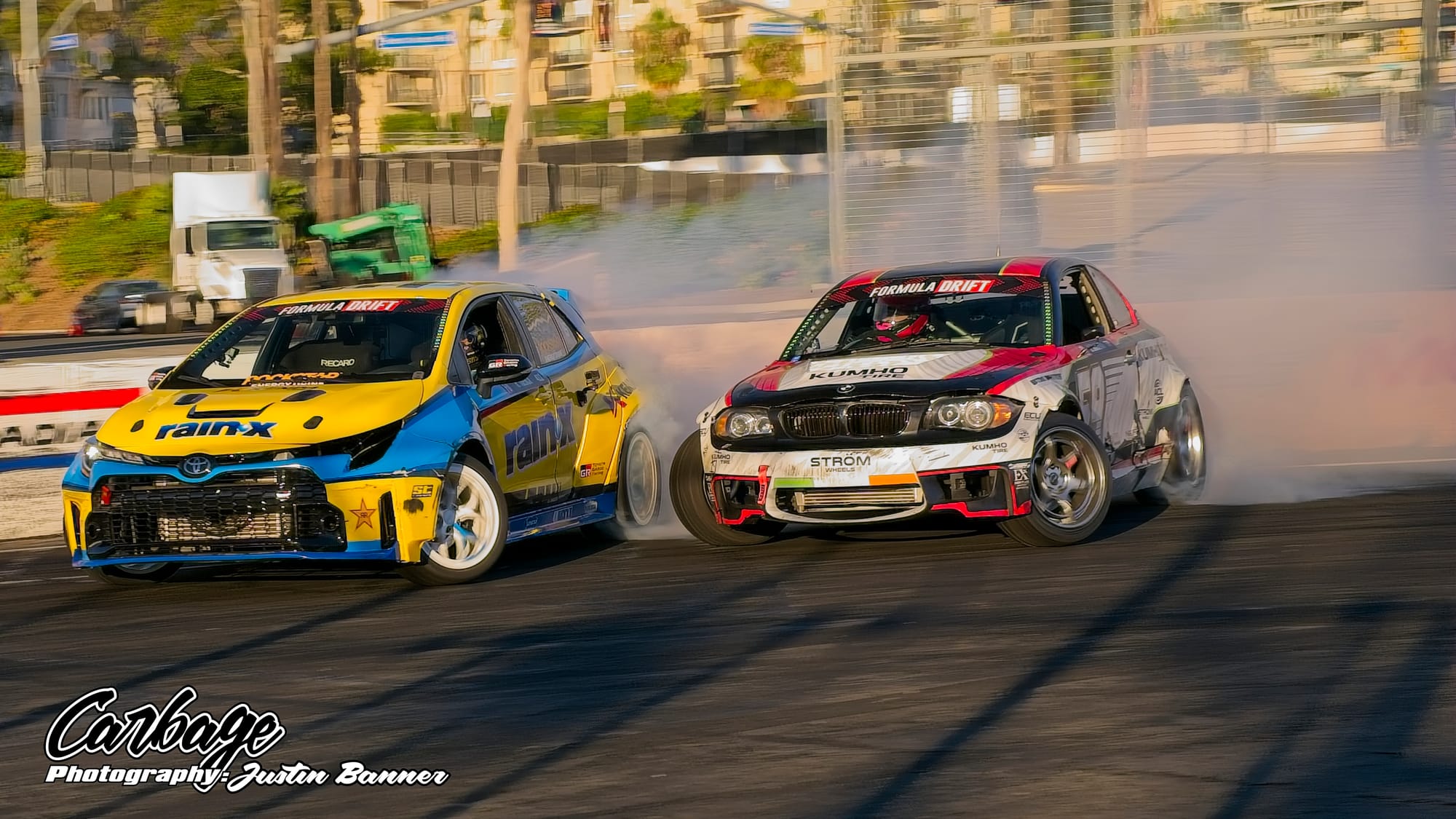 One of the unforeseen issues of running Shoreline Showdown was the lack of visibility, particularly as the sun set and drivers with more wheel speed were able to smoke their tires far more. This artificial cloud made visibility hard not only for drivers—a constant challenge for follow drivers, particularly—but also for fans and light winds weren’t helping clear it out. As the course did come back on itself before the finish, tire smoke lingered in the air and blocked the view of the finish. Hopefully, when Formula Drift comes back to Long Beach for round eight, this configuration will be tweaked to reduce that issue. Else, it will ruin the show for fans if there isn’t any wind to help clear the course. Otherwise, it seemed like a huge success that Formula Drift needed to make Long Beach a more permanent home for the final in the future.