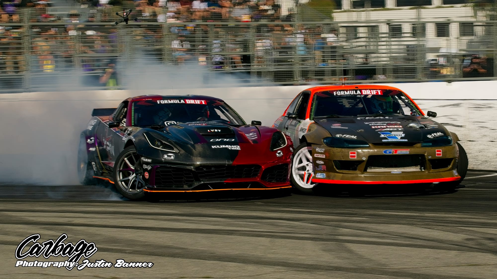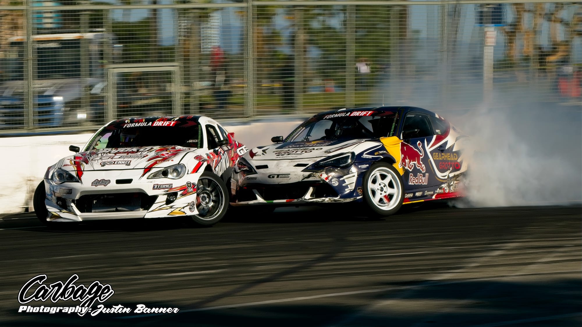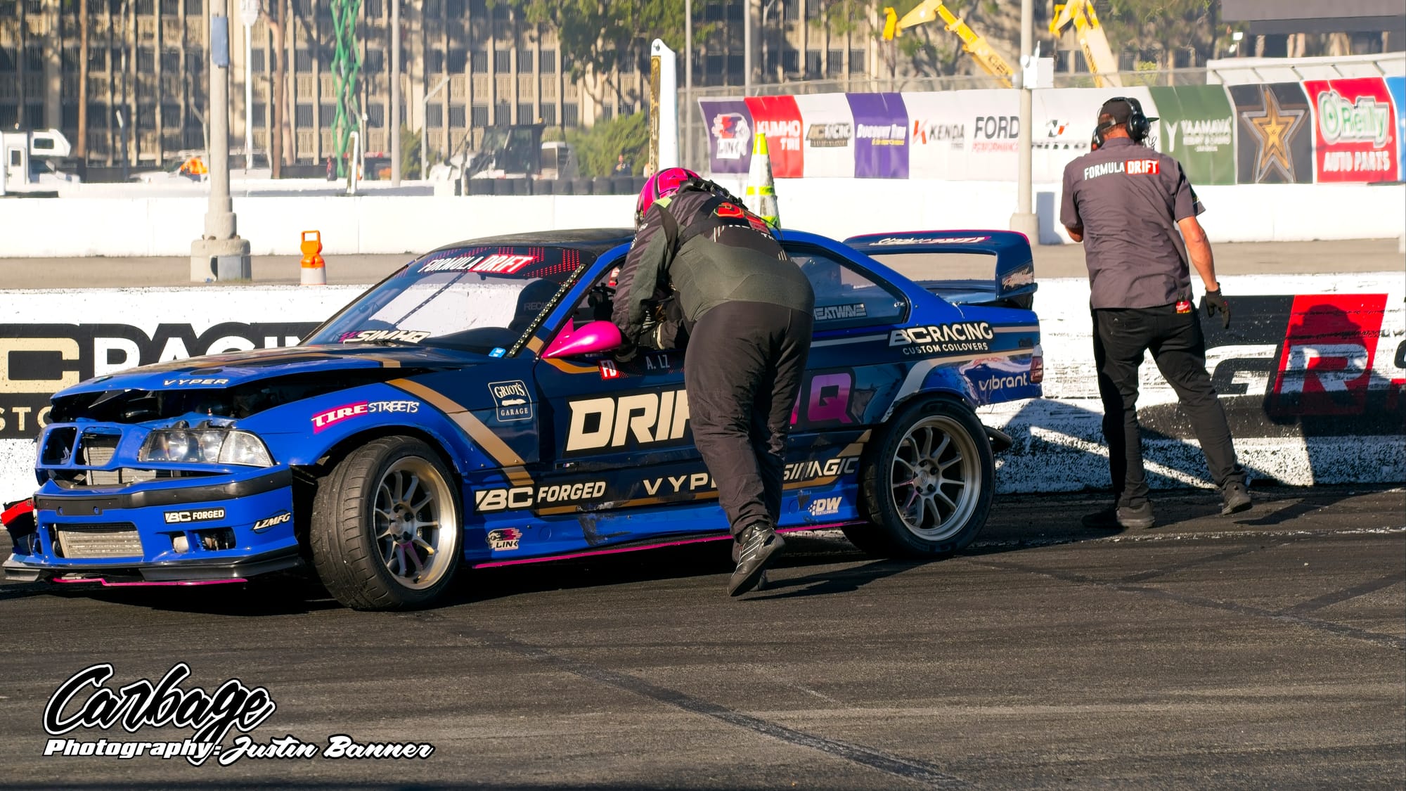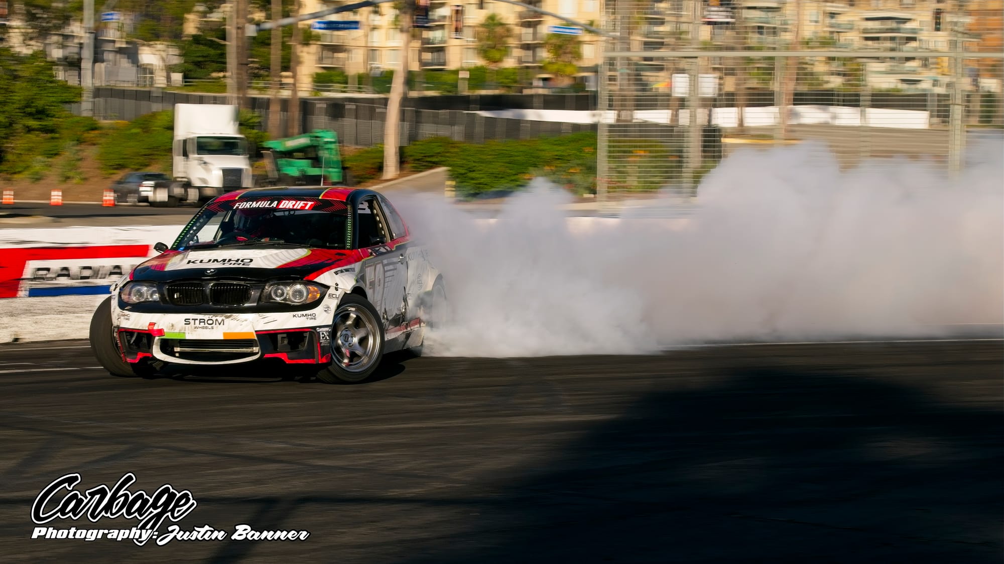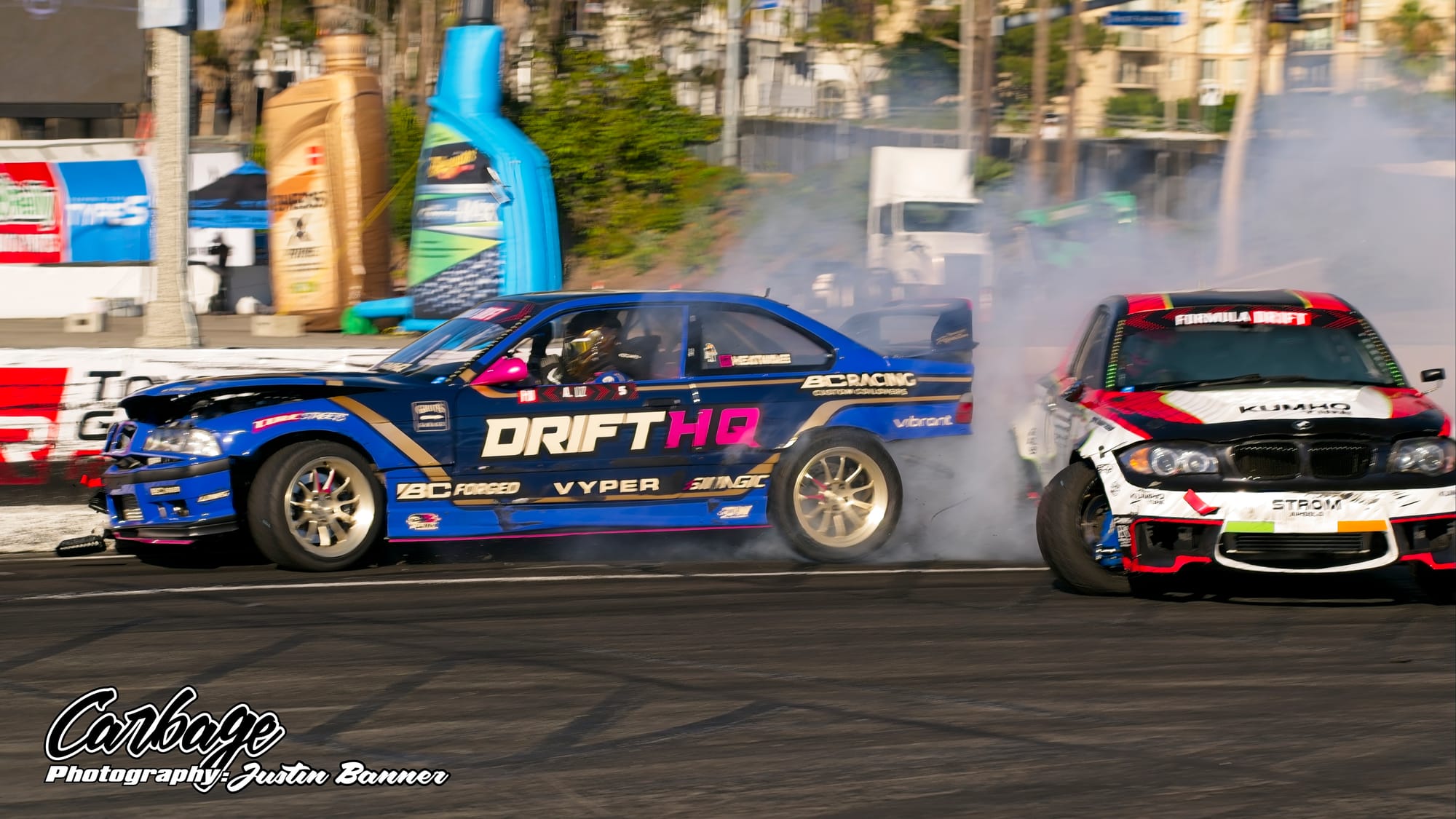 One of the unforeseen issues of running Shoreline Showdown was the lack of visibility, particularly as the sun set and drivers with more wheel speed were able to smoke their tires far more. This artificial cloud made visibility hard not only for drivers—a constant challenge for follow drivers, particularly—but also for fans and light winds weren’t helping clear it out. As the course did come back on itself before the finish, tire smoke lingered in the air and blocked the view of the finish. Hopefully, when Formula Drift comes back to Long Beach for round eight, this configuration will be tweaked to reduce that issue. Else, it will ruin the show for fans if there isn’t any wind to help clear the course. Otherwise, it seemed like a huge success that Formula Drift needed to make Long Beach a more permanent home for the final in the future.