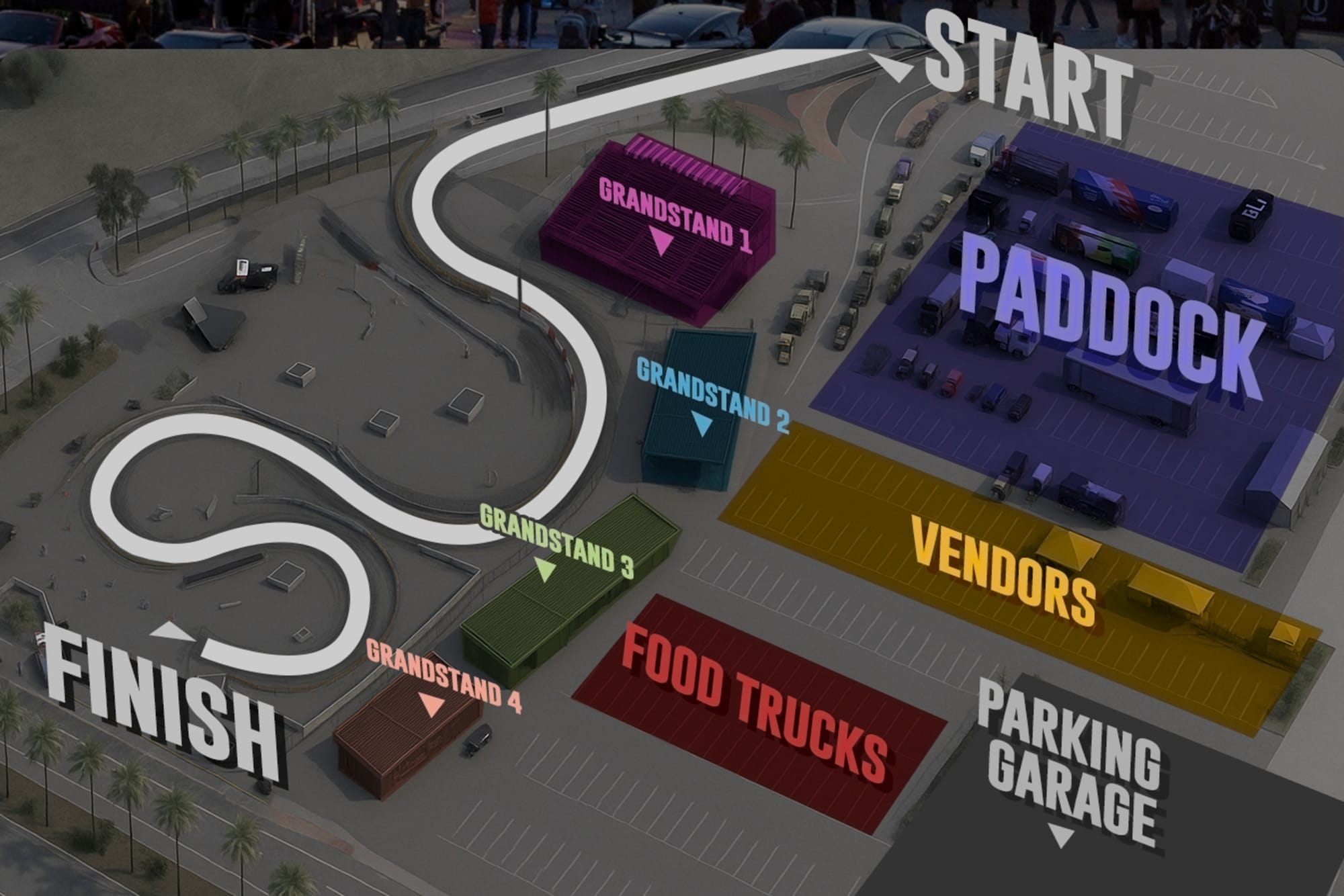 One feature that will come back from round one will be the Shoreline Drive straight. But unlike the season start drivers will go backwards on that legendary drive for round eight as it will serve as the start and run-up to the first turn. Instead of a hairpin right, it will be a smooth left-hand turn leading into the Seaside Way parking lot that is normally utilized as the car show grounds for round one. Drivers will then transition into a double left hand turn that leads into a much tighter right that creates a hairpin shape. The final left turn will close the run within the parking lot.